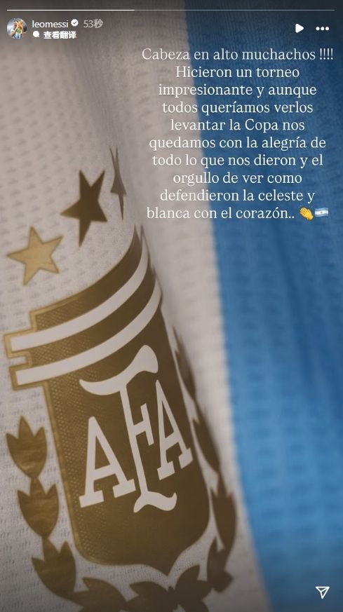 10月20日,阿根廷U20在世青赛决赛中0-2不敌摩洛哥U20,错失夺冠机会。成年队方面,梅西带领的阿根廷国家队取得了五连冠(包括欧洲国家联赛南美超级德比杯、2次美洲杯、欧美杯和世界杯)。不过,阿根廷U20不能继续依赖老大哥。不过,他们毕竟还年轻,还有很多机会。作为国家体育领袖,梅西也关注这群年轻的同胞。在阿根廷U20未能夺冠后,梅西也给同胞们送去了鼓励。梅西写道: 孩子们,抬头看!你在这场比赛中做得很好。虽然大家都期待看到你夺得冠军,但他们也会被你的精彩表现所鼓舞。看到你全心全意捍卫阿根廷球衣,我们都很自豪。我希望球王g效应和偶像之偶像可以让这支刚刚经历失利、丢掉冠军的阿根廷U20国脚队感受到精神,让他们从失败中找到经验和进步的空间,最终取得成功。梅西的话能起到这样的效果,因为梅西曾经用他的演讲感动了队友,并赢得了美洲杯和世界杯。梅西早年沉寂,但现在他是绝对的领袖。梅西的鼓励可以“治愈心灵的伤痛”,因为他本人就是脱贫的典范。正如他所说:“我并不是生来就坚强,我只是生来就坚强。”这就是梅西——他用出色的球技征服了赛场,用强硬的性格和温暖的性格征服了所有人。